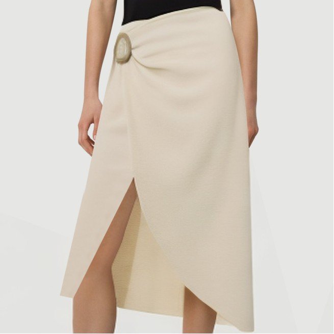 This women’s maxi skirt features a classic A-line design with a naturally flared hem, creating a smooth and elegant silhouette that flatters the legs and enhances feminine elegance. The warm, soft beige hue creates a simple and elegant look that’s versatile and suitable for a variety of casual and everyday wear, effortlessly creating a natural and stylish look.The skirt features side buckles and a front slit, adding a unique design and functionality. The side buckles allow for easy waist adjustment, enhancing comfort and a snug fit, while the front slit adds a touch of movement and style. Made from 100% polyester fabric, garment-dyed, it boasts vibrant, even-toned colors, high colorfastness, and durability. The woven fabric is dense and finely textured, offering excellent breathability and long-lasting comfort, perfect for spring and summer wear.Care Instructions:Hand wash in cold water on a gentle cycle to preserve the fabric and buckles.When machine washing, turn the skirt inside out and place it in a laundry bag on the gentle cycle to reduce wear and deformation.Avoid using detergents containing bleach to prevent color fading and fabric damage.Dry naturally in the shade after washing, away from direct sunlight to preserve the vibrant colors and elasticity of the fabric.Do not tumble dry at high temperatures to prevent shrinkage and deformation, and to preserve the skirt’s shape.Ironing is recommended on a low heat, inside out, gently ironing, avoiding the buckle area to protect the fabric and decorative details.Wash separately from lighter or similarly colored items to minimize staining and wear, extending the life of the skirt.
