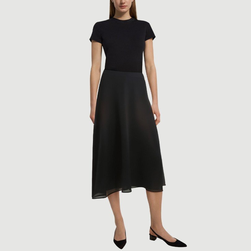 This women’s maxi skirt features a classic A-line design with a naturally loose, flowing hem that showcases graceful curves. The classic black color i…