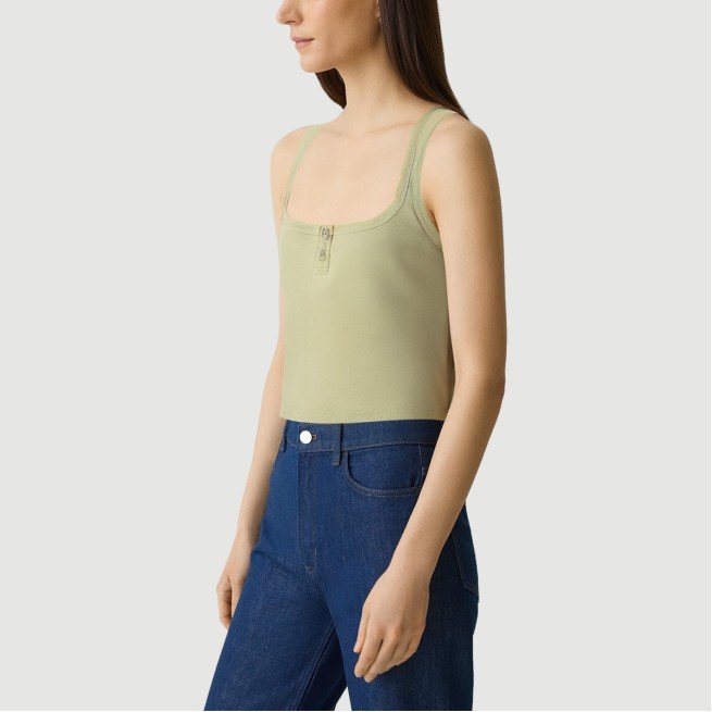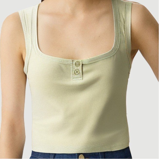 This vest features a vintage square neckline, accented by delicate double-button embellishments, adding a touch of chic detail and unique charm. The square neckline elegantly frames the neck and shoulders, while the slim fit perfectly hugs the female figure, accentuating curves for a stylish yet classic look. The double-button design not only enhances the look but also adds a seamless blend of vintage charm and modernity.The vest is crafted from 100% polyester, offering a lightweight and breathable texture perfect for warm summer weather. The 120g fabric is soft and delicate to the touch. The weaving process and advanced computerized knitting technology create a uniform and dense fabric structure, ensuring both comfort and durability. The solid color design is simple and elegant, easily paired with a variety of bottoms, making it suitable for a variety of occasions, from casual wear to dates and casual gatherings.This vest not only reflects quality details but also combines practicality with style, making it a versatile addition to your summer wardrobe, easily creating a chic and layered look.Care Instructions:Hand wash or machine wash in cold water on a gentle cycle. Avoid high temperatures and strong agitation to protect the buckles and fabric structure. Turn the garment inside out when washing in a laundry bag and select the gentle cycle to minimize wear and tear on the fabric and buckles. Avoid using detergents containing bleach to prevent fading and damage to the fabric. Dry naturally in the shade after washing, away from direct sunlight to preserve the color and elasticity of the fabric. Avoid high-temperature tumble drying to prevent shrinkage and deformation, and to maintain the perfect shape of the vest. Ironing is recommended at a low temperature and gently, avoiding direct contact with the buckles to protect the decoration and fabric texture. Wash separately from similar or similarly colored items to prevent staining and wear, and to extend the life of the vest.