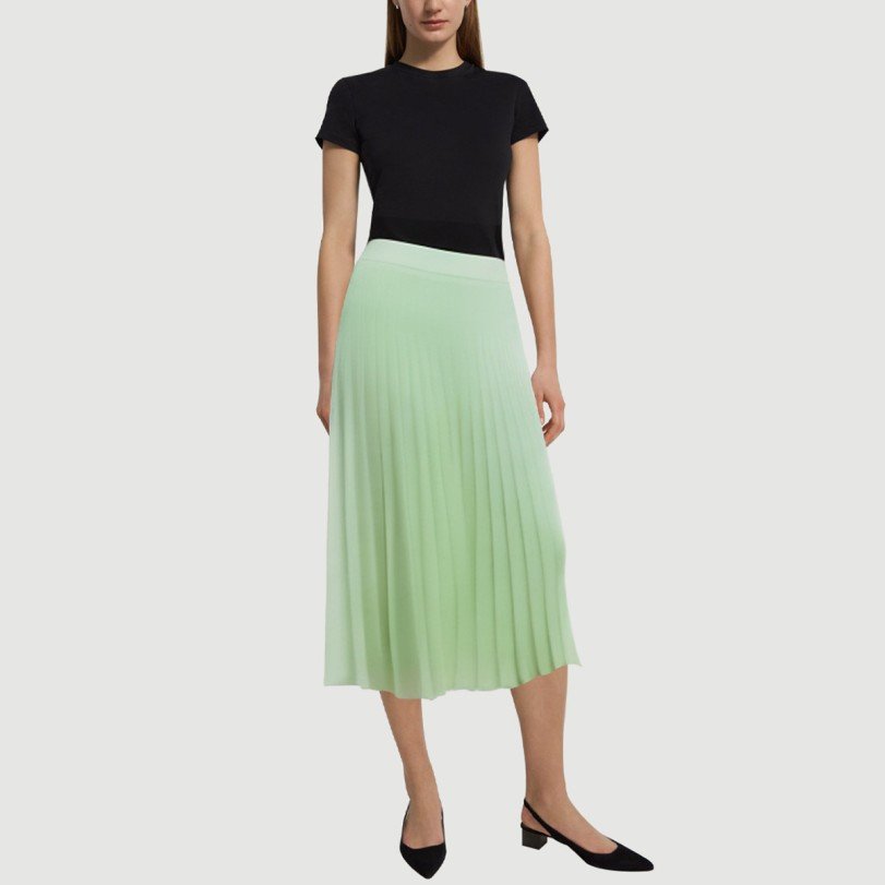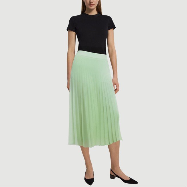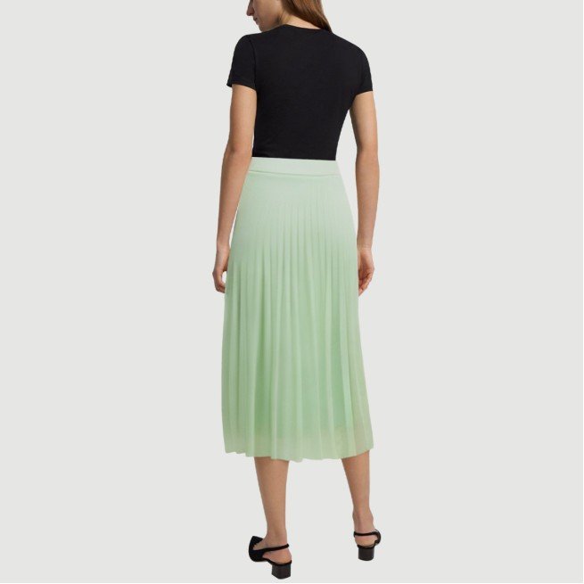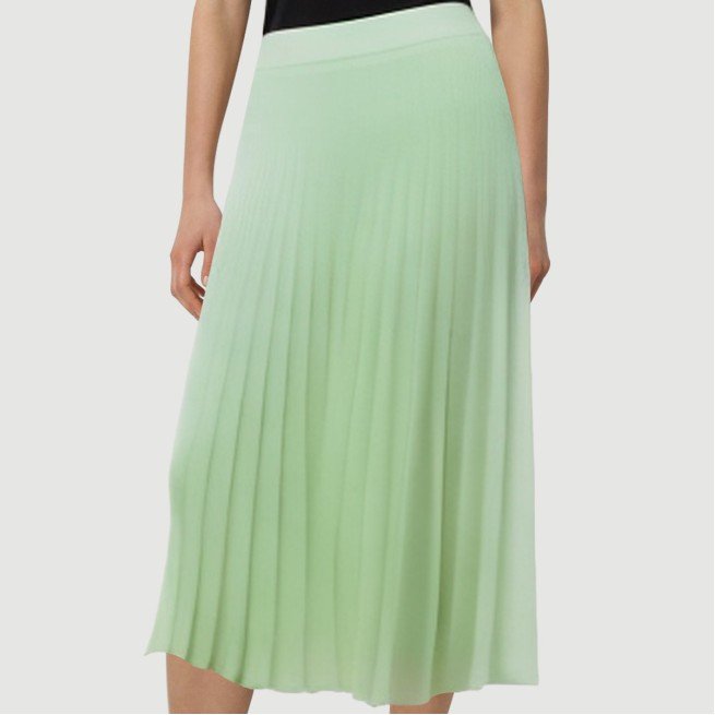 This women’s maxi skirt features a classic A-line silhouette with a loose, natural hem. The delicate pleating adds a touch of layering, lending it a light, dynamic feel, showcasing a feminine and graceful presence. The refreshing green color scheme creates a stylish and vibrant look, perfect for casual wear, outings, or gatherings, creating a fresh and natural look.The skirt features a hidden zipper at the back for easy on and off, while maintaining a sleek, clean silhouette. The details showcase exquisite craftsmanship. Made from 100% polyester, it’s garment-dyed for a uniform, long-lasting color with high colorfastness and durability. The woven fabric is dense and fine, yet breathable, ensuring comfort and dryness even in warm weather. The overall design balances fashion with practicality, making it an ideal choice for women who appreciate both quality and style.Care Instructions:Hand wash in cold water, gently scrubbing to preserve the pleated details and fabric texture.When machine washing, turn the skirt inside out and place it in a laundry bag on the gentle cycle to prevent wear and deformation.Avoid using detergents containing bleach to prevent fading and fiber damage.Dry naturally in the shade after washing, away from direct sunlight to preserve the color and elasticity of the fabric.Do not tumble dry at high temperatures to prevent shrinkage, wrinkles, and deformation, ensuring the skirt’s shape remains intact.Ironing is recommended on a low heat, with the reverse side facing up, avoiding direct contact with wrinkles and protecting the details and fabric.We recommend washing separately from lighter-colored or similar-colored items to reduce the risk of staining and wear, and extend the life of the skirt.