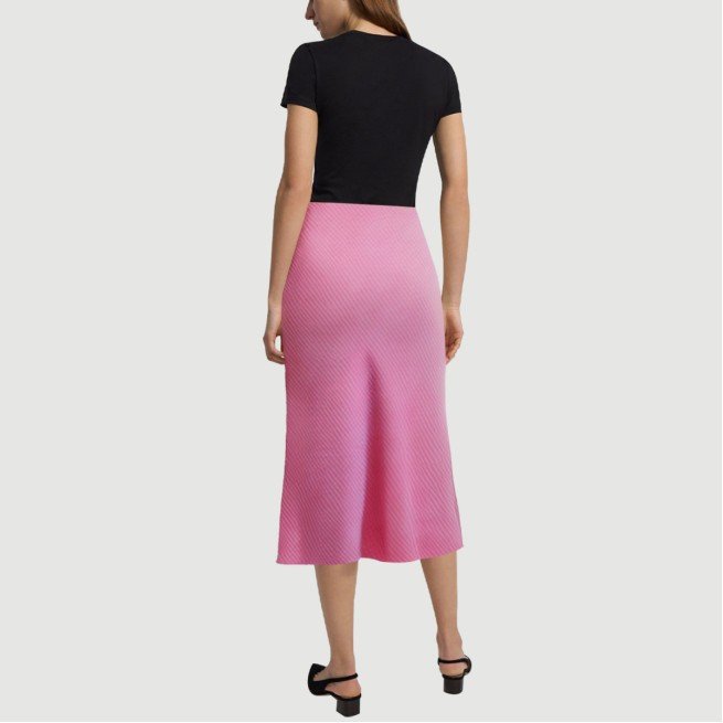 This women’s maxi skirt features a classic A-line design with a loose, natural hem and layered zippered pleats, lending it a uniquely dynamic and stylish feel. The soft pink base, accented by a refreshing striped print, adds visual interest and vibrancy, making it perfect for a variety of occasions, from casual wear to dates and get-togethers. The skirt not only showcases a feminine and elegant temperament, but also combines practicality with individuality.The fabric is made of 100% polyester and garment-dyed to ensure uniform, long-lasting color with excellent colorfastness, resisting fading over time. The woven fabric provides a dense structure and a delicate texture, offering excellent breathability, effectively regulating body temperature, and ensuring comfort. A hidden zipper at the back allows for easy on and off while maintaining a sleek, clean silhouette. The overall design combines fashion with functionality, meeting the modern woman’s dual needs for comfort and aesthetics.Care Instructions:Hand wash in cold water on a gentle cycle to preserve the fabric and print.When machine washing, turn the skirt inside out, place in a laundry bag, and select the gentle cycle to prevent wear and deformation.Avoid using detergents containing bleach to prevent color fading and fabric damage.Dry naturally in the shade after washing, away from direct sunlight to preserve the vibrant colors and elasticity of the fabric.Do not tumble dry at high temperatures to prevent shrinkage, wrinkles, and deformation, and to maintain the skirt’s shape.Ironing is recommended on a low heat, on the reverse side, avoiding the printed area to preserve the fabric and pattern details.We recommend washing separately from lighter or similarly colored items to reduce the risk of staining and wear, and to extend the life of the skirt.