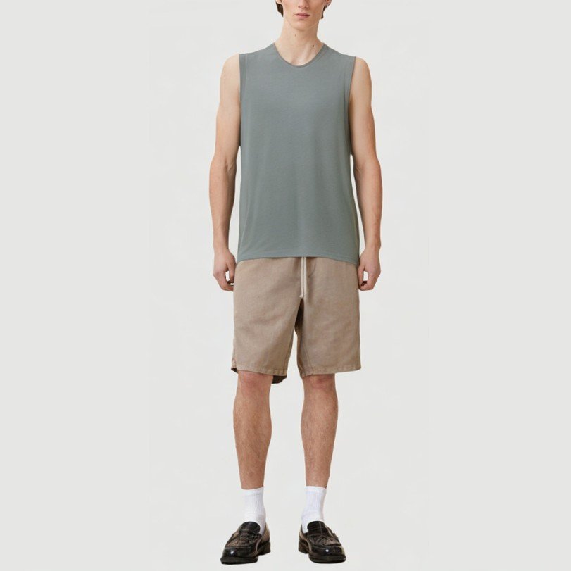 This men’s vest is made from 100% cotton and acid-washed for a unique vintage feel and natural color. The lightweight and breathable fabric effectively wicks away perspiration, keeping you dry and comfortable, making it ideal for high-intensity workouts and sports. The 220g fabric weight ensures durability and excellent support, while also resisting pilling for a longer lifespan. The classic crew neck design is simple and stylish, fitting snugly around the neck for a masculine look. The solid color design easily matches with a variety of athletic gear, offering both practicality and aesthetics.Care Instructions:We recommend machine washing in cold water on the gentle cycle. Avoid using bleach or chlorine-containing detergents. Turn the vest inside out before washing to reduce friction on the surface of the fabric and preserve the acid wash effect and fabric structure. Avoid high-temperature washing and drying to prevent shrinkage and warping, and to preserve the garment’s shape. Dry in a cool, well-ventilated area, away from direct sunlight, which can cause fading and fabric degradation. Use low temperatures when ironing, and it’s best to work on the inside out to prevent damage. We recommend washing the vest separately or with similar colors to prevent staining and color shifts.
