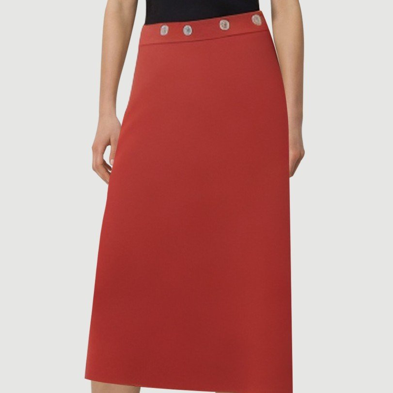 This women’s maxi skirt features a classic A-line design with a naturally loose hem and flowing lines, perfectly framing the legs and showcasing elegant feminine charm. The vibrant red hue is stylish and eye-catching, perfect for both casual and everyday occasions. The unique rivet embellishment and back seam detailing on the back add a touch of personality and design, adding a unique and layered look. The rivets not only create a focal point but also enhance the skirt’s modern, street-inspired feel.The fabric is made of 100% polyester and garment-dyed, resulting in vibrant, even color with excellent colorfastness, ensuring long-lasting color retention. The woven fabric is tightly constructed, soft, and breathable, ensuring excellent wearability and comfort in spring and summer, ensuring comfort and dryness. The overall design combines fashion with practical functionality, making it an ideal choice for women who value individuality and comfort.Care Instructions:Hand wash in cold water on a gentle cycle to preserve the fabric’s color and the integrity of the rivet details.When machine washing, turn the skirt inside out and place in a laundry bag on a gentle cycle to avoid fraying and stretching.Avoid using detergents containing bleach to prevent color fading and fabric damage.Dry naturally in the shade after washing, away from direct sunlight to preserve the vibrant color and elasticity of the fabric.Do not tumble dry at high temperatures to prevent shrinkage and distortion, and to maintain the shape of the skirt and rivet details.Ironing is recommended on a low heat, on the reverse side, avoiding the rivet areas to protect the fabric and decorative details.We recommend washing separately from like-colored or lighter-colored items to reduce the risk of staining and wear, and to extend the life of the skirt.